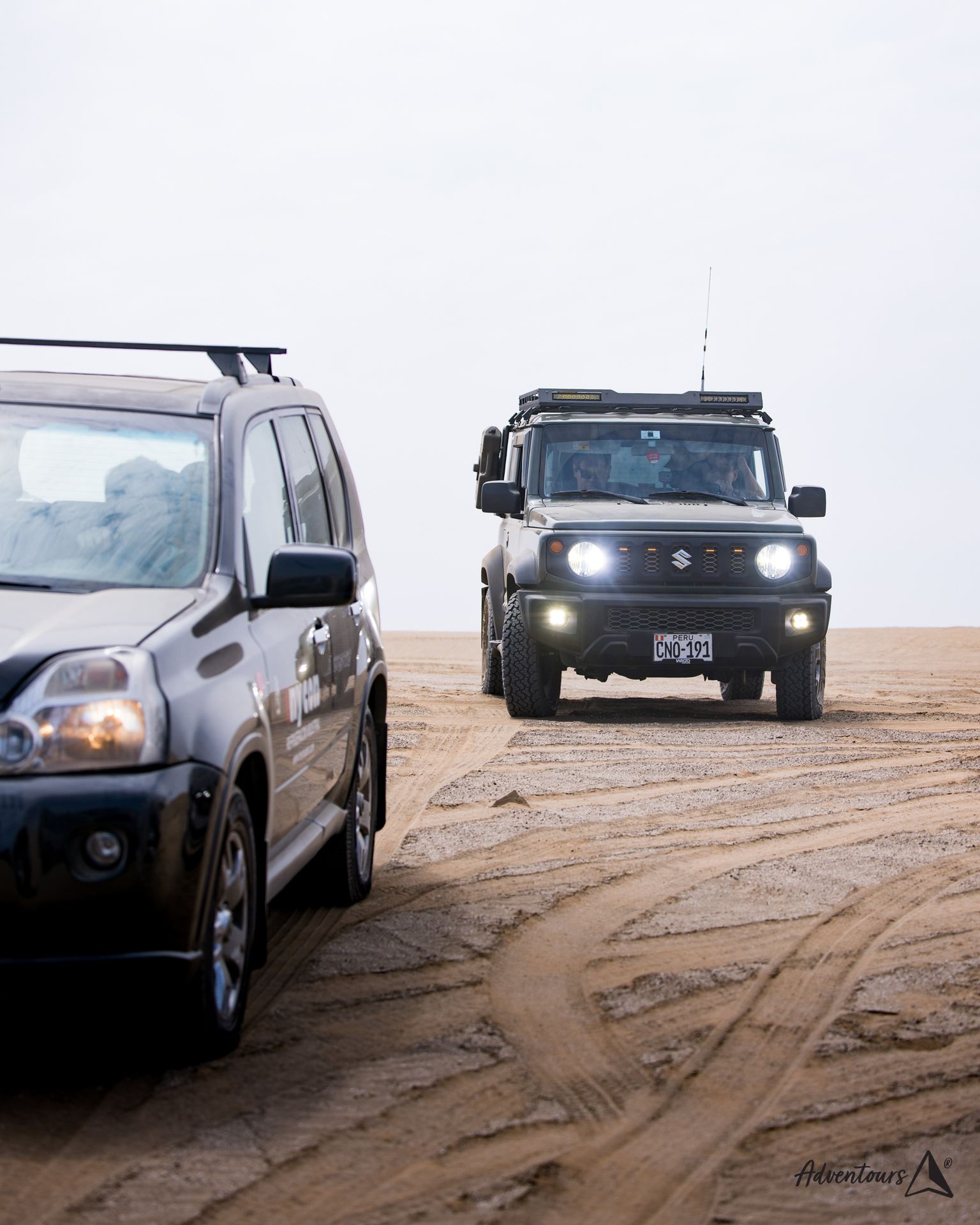 Iniciamos la jornada con la preparación y abastecimiento de los vehículos, para luego ingresar al primer circuito técnico, enfrentando terrenos mixtos de arena, piedras y cascajo. Durante la mañana, practicaremos control de tracción, maniobras precisas y ejercicios de rescate.